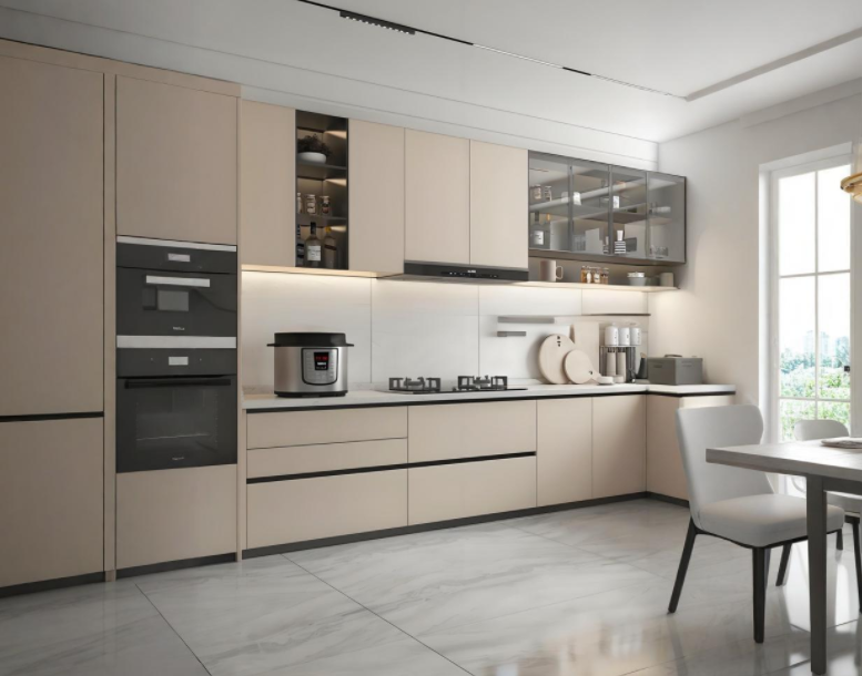 功能多样:爱格板橱柜可以根据用户需求设计各种功能性配件,如拉篮、抽屉、转角柜等,极大地提高了厨房的实用性。